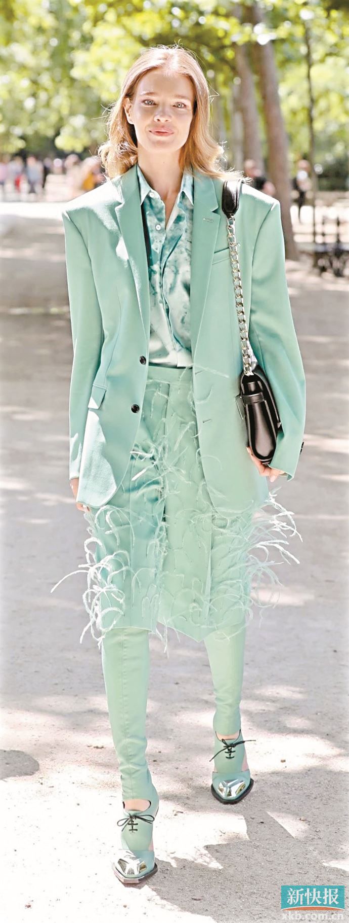 时髦精们不妨尝试下“薄荷曼波”,以轻盈绿色演绎穿搭的视觉舞蹈。