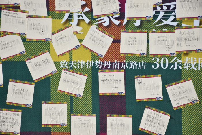 许多消费者写下留言与伊势丹天津南京路店告别。