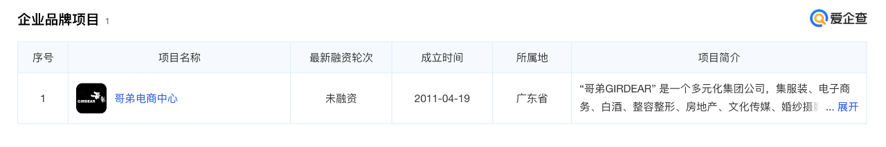 广州哥弟真的好贸易有限公司“企业品牌项目”。(图片截自爱企查)