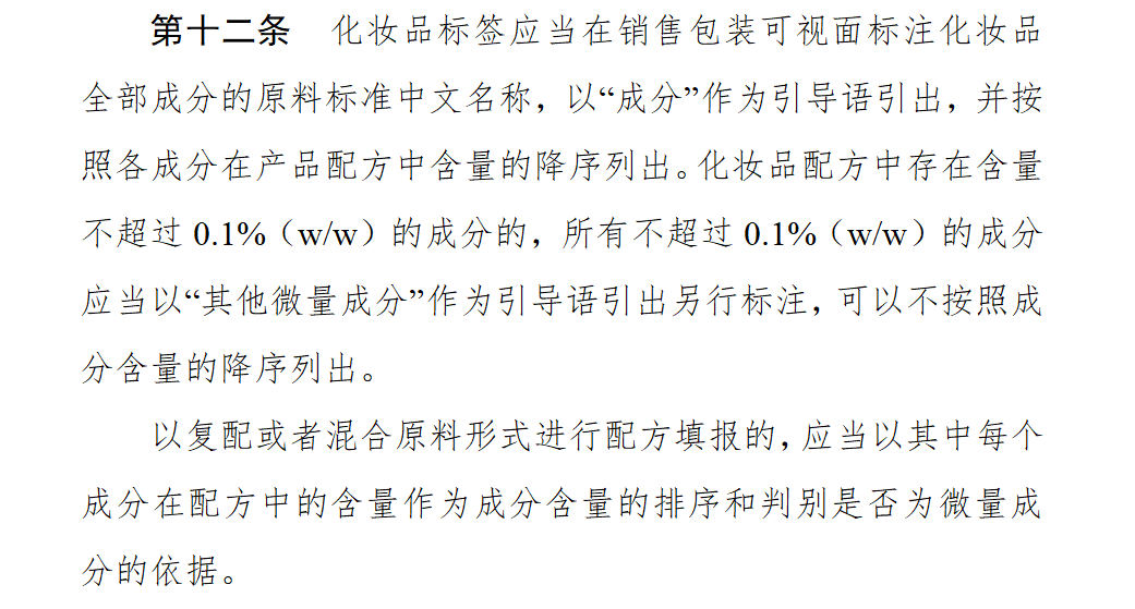 防腐剂存在于化妆品中主要有两种形式,一种是在化妆品生产过程中有目的的添加到产品配方中,用于确保产品稳定性的防腐剂。另一种则是为保证化妆品原料质量在原料中添加且在最终产品中含量极微的防腐剂。因后者在使用目的、带入形式、含量等方面有别于前者,所以中国食品药品检定研究院2023年发布的《化妆品配方填报技术指导原则》中明确此类成分不属于化妆品配方成分。同时国家药品监督管理局也在《化妆品监督管理常见问题解答(五)》中明确,为了保证化妆品原料质量而在原料中添加的极其微量的抗氧化剂、防腐剂、稳定剂等成分可以在标签中标注,也可以不标注。