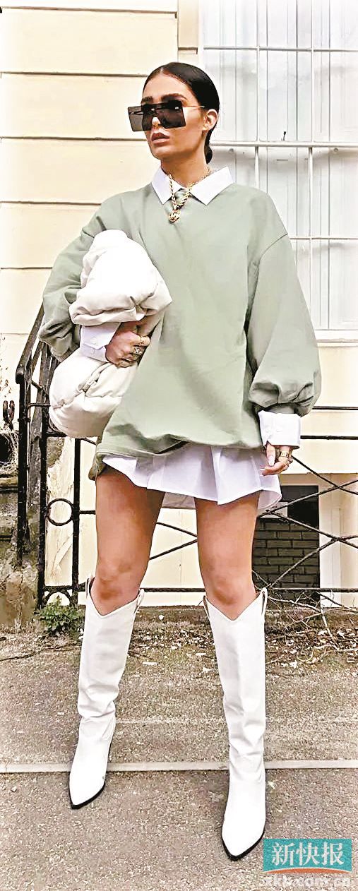 如果温度再降低些可在卫衣内搭衬衫,短下装配靴子,风格瞬间从青春活力到成熟个性。