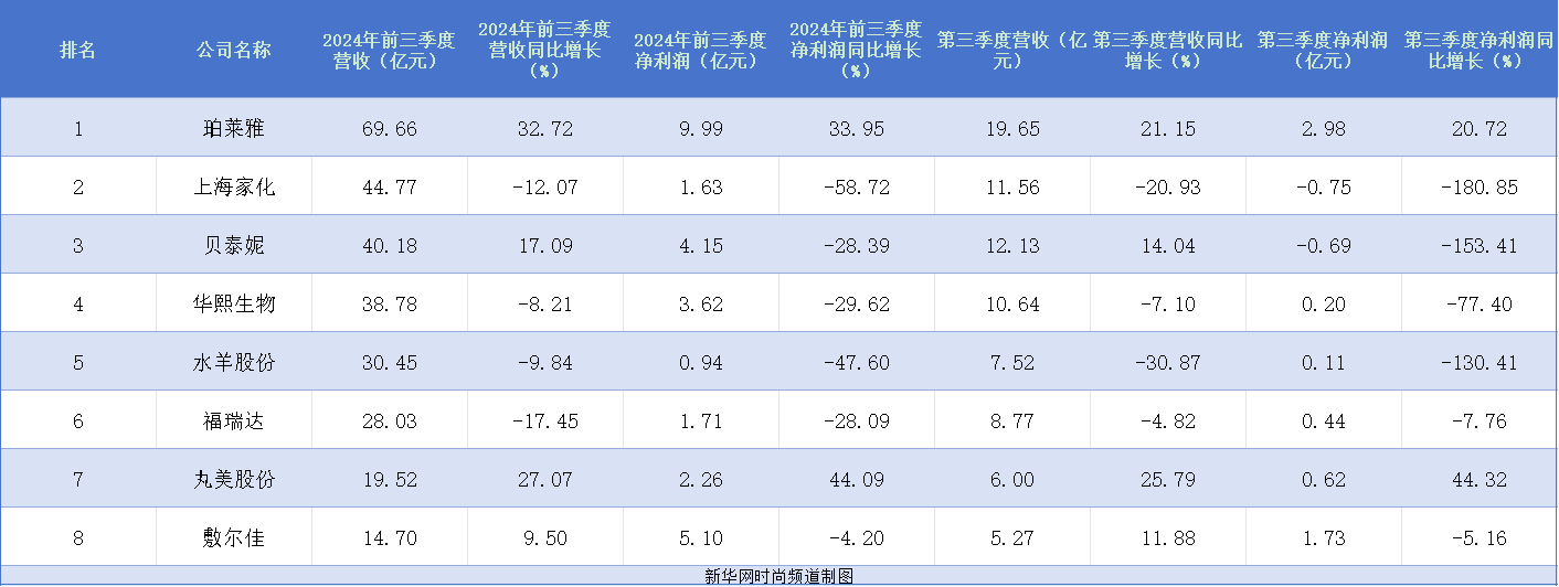 随着华熙生物在10月30日发布2024年第三季度业绩报告,今年国内头部上市美妆企业三季报已全部出炉,行业发展态势也逐渐明朗。
