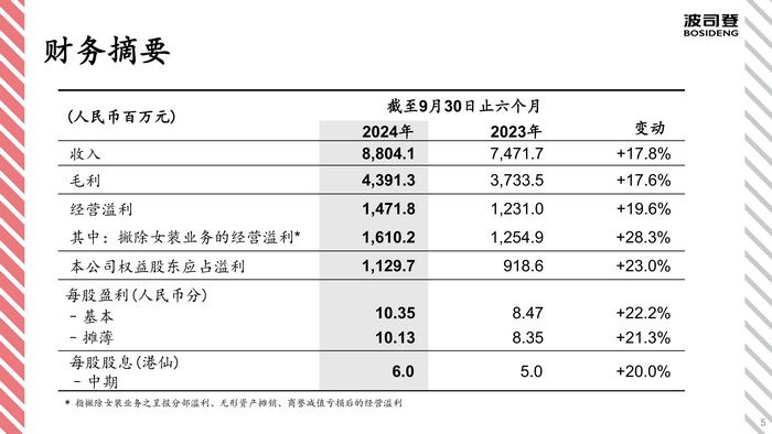 波司登(3998.HK)2024/25中期业绩报告财务摘要