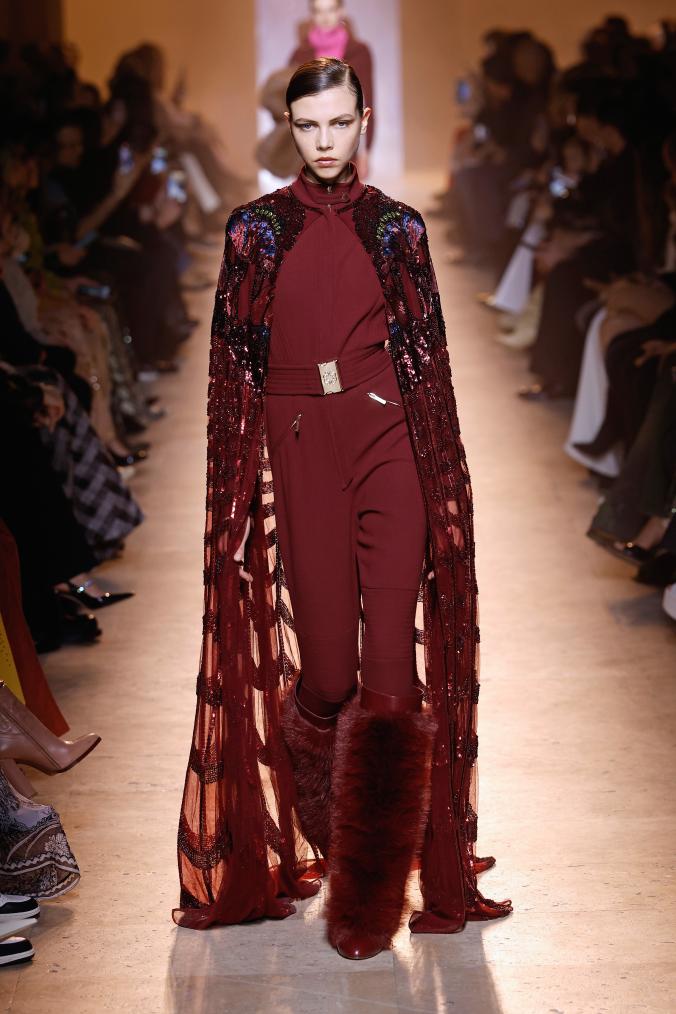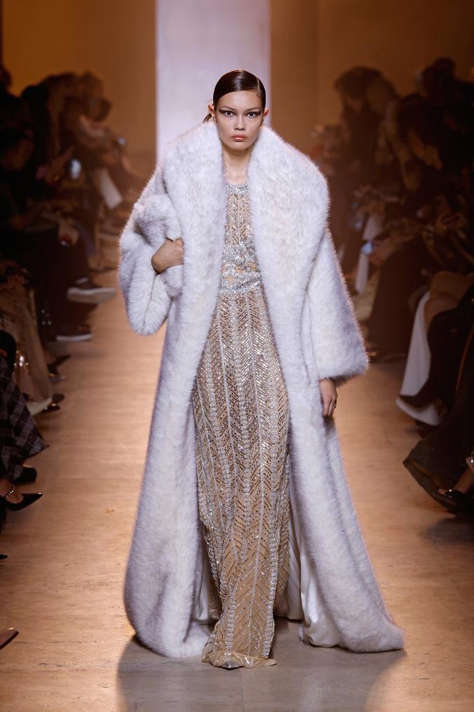 3月8日,模特在法国巴黎时装周上展示艾莉·萨博(Elie Saab)品牌2025/2026秋冬新品成衣。