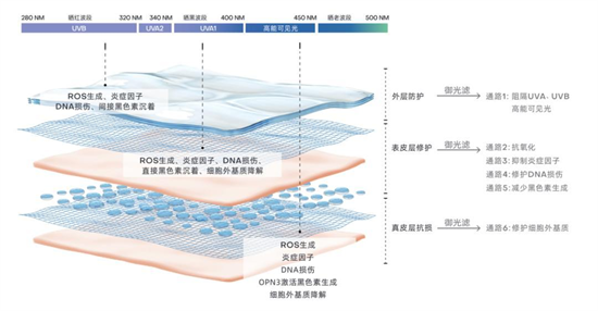 为解决这一行业痛点,新型防晒原料和防晒剂新型工艺成为科研靶点。如蜜丝婷构建“光生物学防晒体系”,联合诺贝尔化学奖得主共同研发出了光生物防护成分“御光滤”。MISTINE蜜丝婷介绍,“御光滤”蕴含高活性的御光多酚,不仅能吸收紫外线和高能可见光,起到防晒增效的作用,还可以修护晒后光损。MISTINE蜜丝婷产品研发总监张涛表示,“御光滤”应用在防晒产品中,可以减少传统物化学防晒剂的添加,实现防晒力与肤感的平衡。