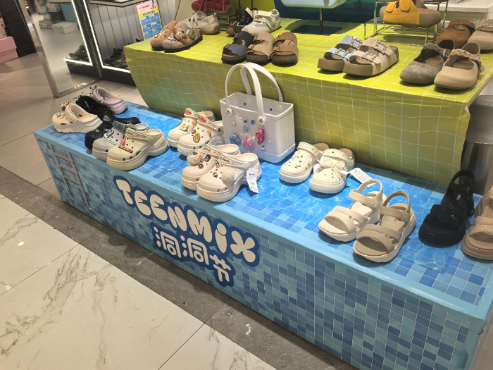 “今年我们品牌推出了黄油小熊联名系列,其中的洞洞鞋卖得很好。洞洞鞋这个款式本身就很可爱,再加上鞋面镂空设计、鞋带插扣设计比较独特,有不少女生都买了这一款。”在北京某商场内的TATA门店,销售人员向记者介绍。