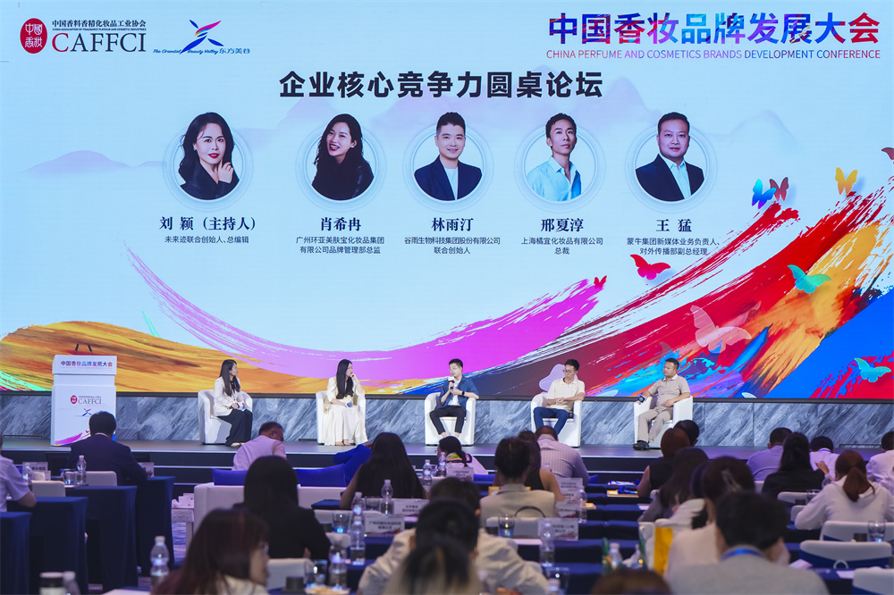 未来迹联合创始人、总编辑 刘颖,谷雨生物科技集团股份有限公司联合创始人林雨汀,上海橘宜化妆品有限公司总裁邢夏淳,广州环亚化妆品科技股份有限公司品牌管理部总监肖希冉,蒙牛集团新媒体业务负责人、对外传播部副总经理王猛齐聚一堂,提出“文化+科技+生态”三位一体的突围路径,为行业穿越周期提供破局范式。
