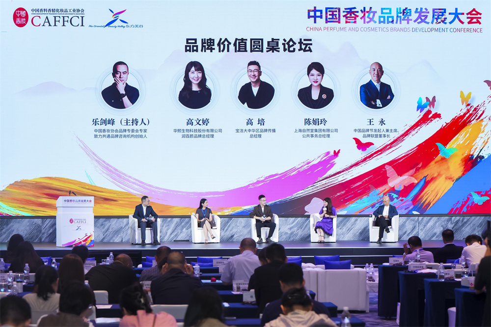 中国香料香精化妆品工业协会品牌专委会专家、致力共通品牌咨询机构创始人乐剑峰,宝洁大中华区品牌传播总经理高培,上海自然堂集团有限公司公共事务总经理陈娟玲,华熙生物科技股份有限公司润百颜品牌总经理高文婷,中国品牌节发起人兼主席、品牌联盟董事长王永围绕“如何提升品牌价值”展开圆桌对话。 与会嘉宾拆解了“品牌价值”的内涵并围绕溢价能力”“用户规模”“科学传播”“科技研发”等话题进行讨论。