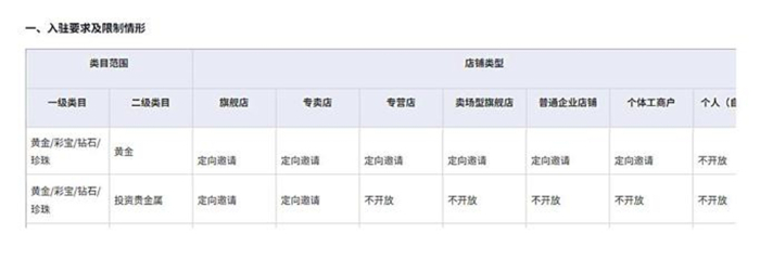 抖音电商客服表示,“商家除需遵守《招商标准及入驻规范》中的基础资质要求外,还应同时满足相应的特殊资质要求,涉及贵金属、珠宝玉石的商品,需提供具有CMA或CNAS资质的第三方质检机构出具的贵金属/珠宝玉石鉴定证书”“平台收取商家保证金分为基础保证金和体验保证金,基础保证金(最低500元)按商家上个自然月支付GMV分档位收取。体验保证金则在店铺如果产生售后或赔付时,优先从货款账户划扣;若货款账户不足,平台会先行垫付,若平台垫付金额超过基础保证金余额或应缴额中较低者,则商家需缴纳体验保证金”“同一主体开店数量:旗舰店(开店数量含官方旗舰店)、专卖店、专营店、企业店每个店铺类型不超过5个,个体店不超过3个”。