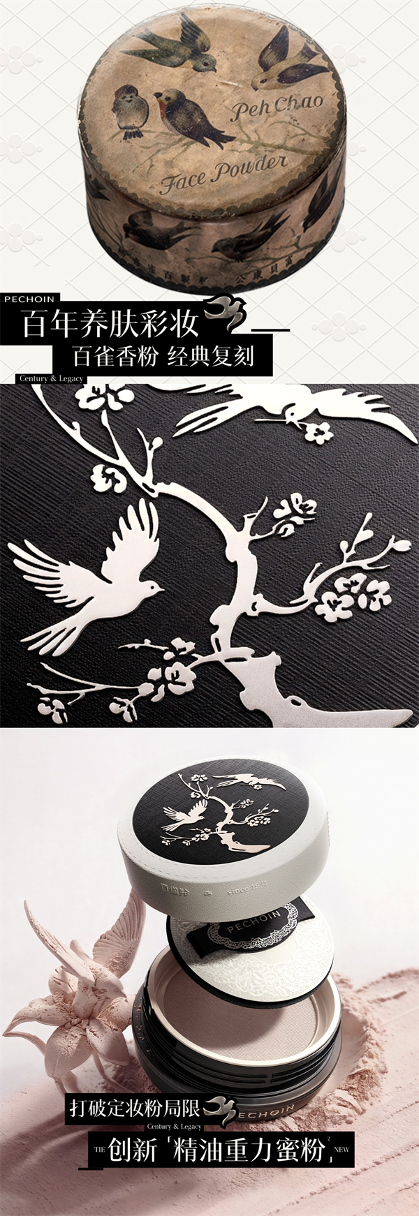 不堆砌传统,将百雀羚百年基因,拆解为可触摸的当代美学,将“东方底蕴 + 西方形制”融入现代时尚场域;雀鸟图腾百年符号现代转译,兼顾文化底蕴与年轻潮流感,不仅是致敬经典,更是现代创新。产品设计沿用百雀羚经典二八分比例,嫁接当代工艺,兼具文化底蕴与个性态度,成为连接百年品牌与年轻消费者的新纽带。