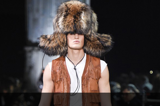Dean和Dan双胞胎设计师再次玩转了皮革、皮草和牛仔的设计元素,延续了热闹和主题性强烈的秀场风格。[详细]
