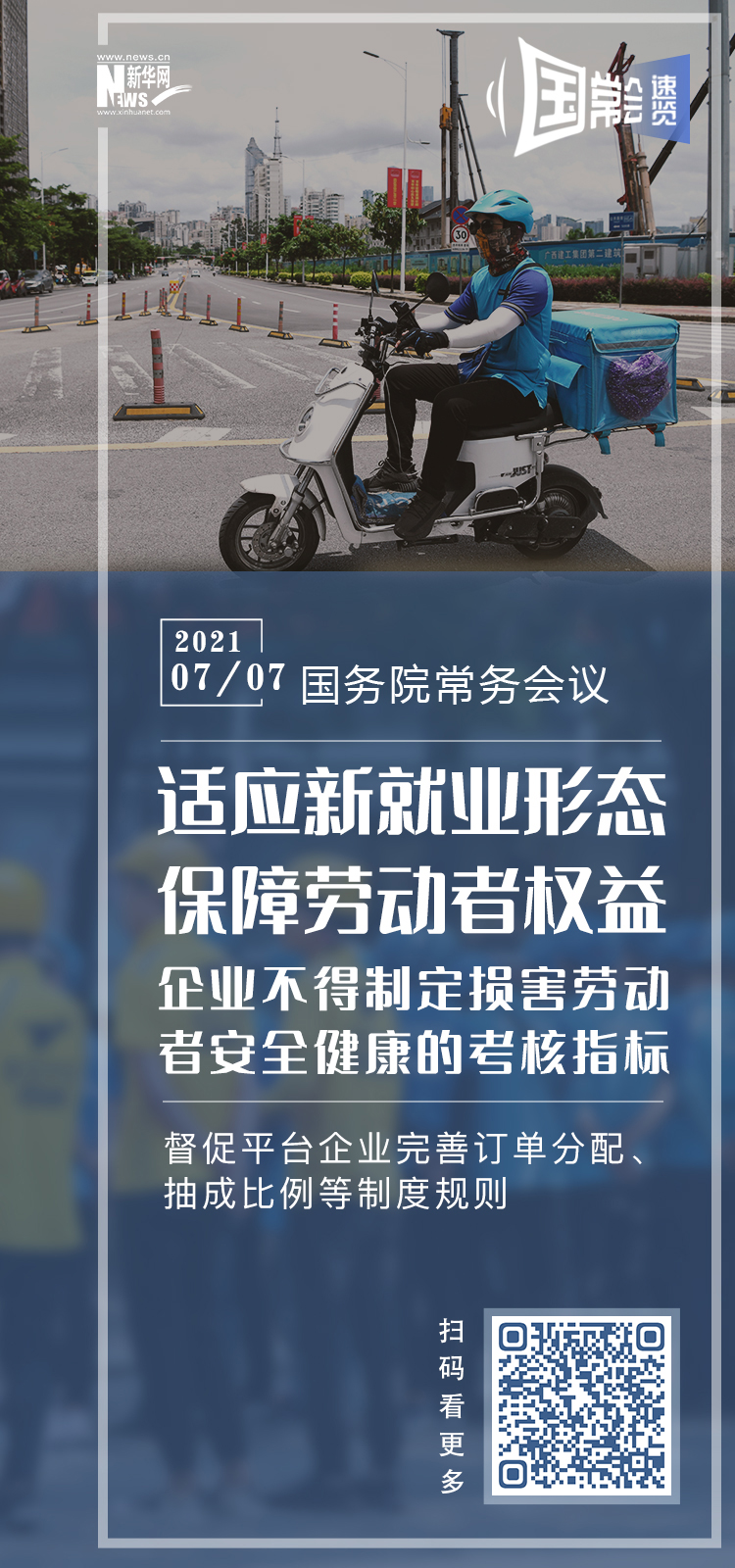 新华网北京7月8日电(黄博阳 杨宽)7月7日召开的国务院常务会议指出,维护好新就业形态劳动者劳动保障权益,有利于促进灵活就业、增加就业岗位和群众收入。会议确定,要适应新就业形态,推动建立多种形式、有利于保障劳动者权益的劳动关系。