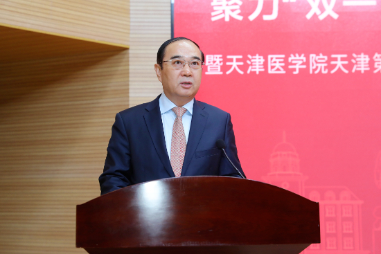 王建国在讲话中指出,天津医科大学历史悠久,在办学历程中为国家强盛、民族复兴、医学进步、社会发展书写了“天医答卷”,勾勒出兴医报国的办学初心,彰显出德高医粹的育人理念。当前,在全市上下深入学习贯彻习近平总书记视察天津重要讲话精神,践行“四个善作善成”重要要求之际,学校要乘势而上、砥砺奋进,善作善成、再创新局。一是坚持立德树人根本任务,服务高质量发展大局;二是坚持改革创新,走好人才自主培养之路;三是强化有组织科研,支撑新质生产力持续升级;四是强化使命担当,提升服务健康中国健康天津能力水平。