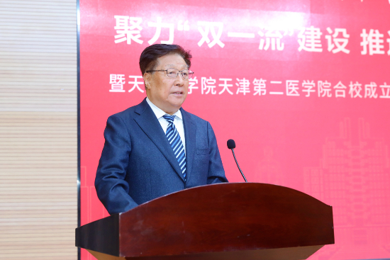 郝希山院士在致辞中说,今年是天津医科大学建校73周年,也是天津医学院与天津第二医学院合并成立天津医科大学30周年,作为合校后首任校长,看到学校今日的发展盛景,感到心潮澎湃、激动万分。他指出,1994年,两校合校成立天津医科大学是天津市高等教育管理体制改革的一项重大举措,实现了国家战略意志、天医历史使命、师生家国情怀的高度统一。30年来,学校经历全面改革,在传承中发展,在发展中创新,通过“211工程”建设、“双一流”建设,实现了长足的发展。面向未来,他希望学校坚持落实立德树人根本任务,坚持心怀“国之大者”,坚持以人民为中心,坚持精神引领与文化建设,努力为推进教育强国、健康中国作出天医应有的贡献。