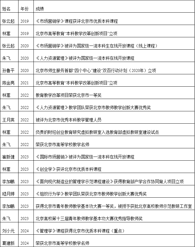 学习质量保障体系的构建,以能力培养为中心,聚焦于对学习目标完成的测量和评估,从根本上保障了教学质量并使其不断提升。经过多年的探索和实践,依托具有AACSB&BGA特色的学习保障体系,市场营销、工商管理、人力资源管理、供应链管理均入选国家一流本科专业,供应链管理入选教育部物流管理与工程类教指委第一批新文科建设点,供应链管理-经济统计学双学士学位项目成功设立。近5年以来商学院在教学方面取得了卓越的成绩。