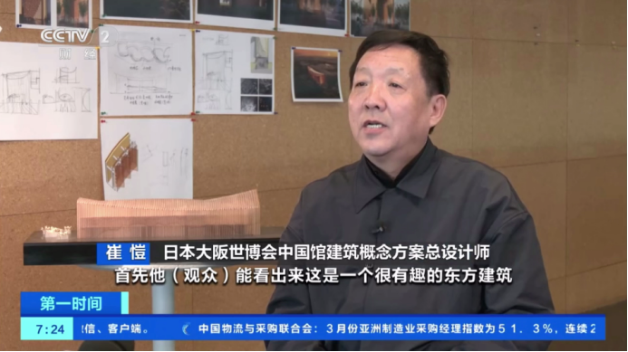 4月7日是2025年日本大阪世博会中国媒体探馆日。中央电视台财经频道带领大家云游中国馆,采访中国国家馆建筑概念方案总设计师、中国工程院院士、中国建科首席科学家、集团所属中国建筑设计研究院有限公司总建筑师崔愷,了解中国馆设计的特别之处,倾听它背后的故事。
