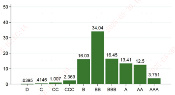 国证ESG评价每季度更新,共设置了10个级别,从高到低依次为:AAA/AA/A/BBB/BB/B/CCC/CC/C/D,反映公司ESG表现在市场中的相对水平。从2025年一季度的国证ESG评价结果来看,沪深A股中A级至AAA级公司数量占比29.7%,B级至BBB级公司数量占比66.5%。