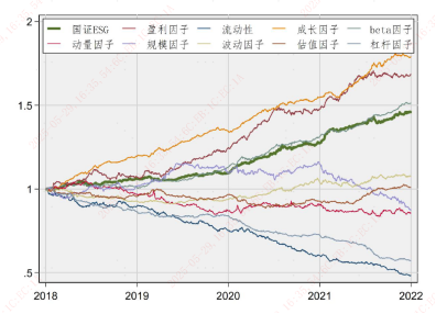 (1)对沪深 A 股收益进行因子归因,从2018年初至2021年底,国证ESG因子近4年的累计收益超46%,相对于其他因子,整体表现较优。