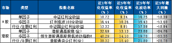 首先,可按成份股的选样范围分为A股红利指数和港股红利指数。从近些年的情况来看,港股红利指数的波动率和股息率通常都高于A股红利指数;