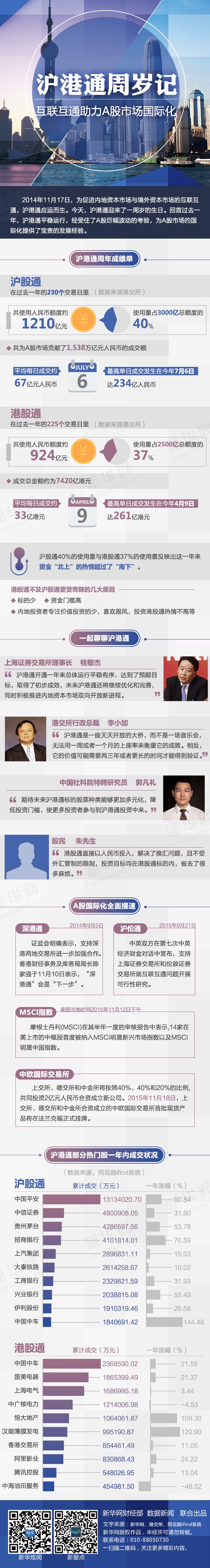 新华网北京11月17日电(记者 刘绪尧 杨晓波)11月17日,沪港通迎来周岁生日。自2014年4月10日,中国证监会与香港证监会发布《联合公告》,批准在中国内地与香港股票市场建立股票市场互联互通机制试点以来,“沪港通”这三个字注定在中国资本市场发展中留下重要一笔,在经历了数次测试后,沪港通于2014年11月17日正式开始交易。