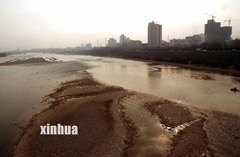 | 2月15日,黄河甘肃兰州段中央河床大面积裸露出来。由于黄河流域来水量比往年同期减少48%,黄河上游各大水库蓄水量比上年减少近20亿立方米。