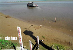 2001年1至8月中旬,黄河中下游地区降雨量较常年偏少九成,旱情十分严重,黄河花园口段水位出现历史同期最低水平,水流量只有146立方米/秒,水位达到91.74米的低水位。图为花园口黄河段面的资料照片。 |
