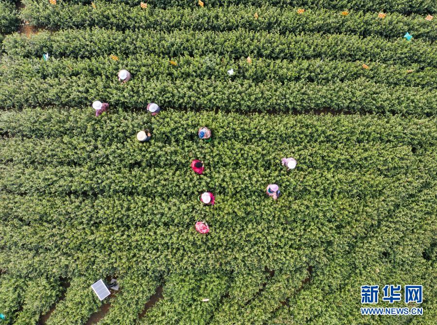2月23日,浙江省杭州市余杭区中泰街道双联村的茶农在采摘首批“乌牛早”春茶(无人机拍摄)。新华社记者 徐昱 摄