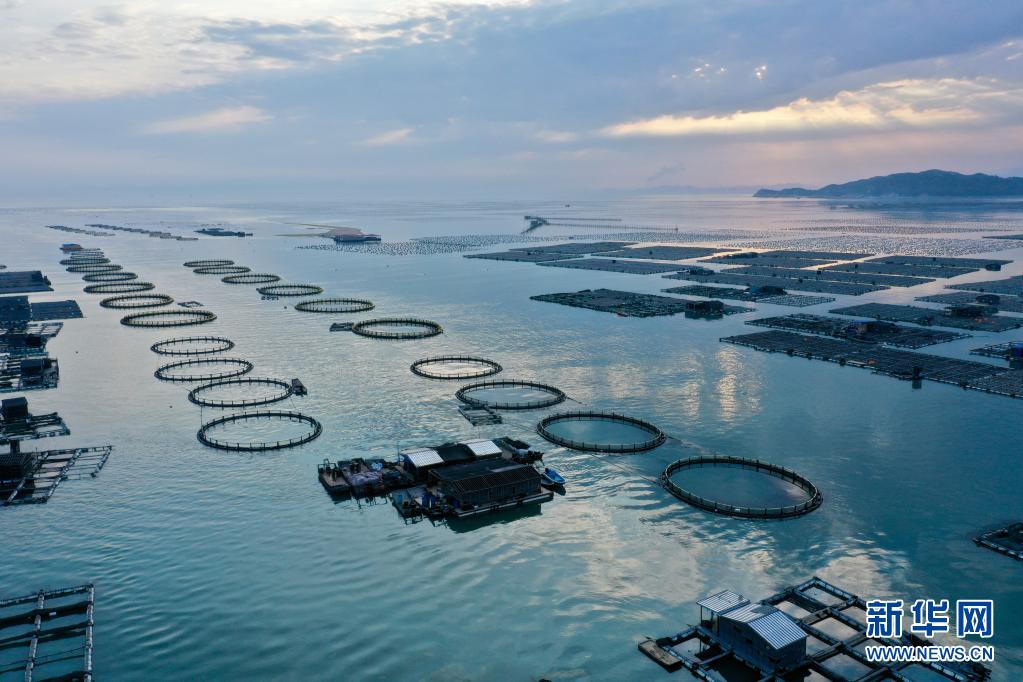 福建省东山县陈城镇海上水产养殖区(2020年3月26日摄,无人机照片)。东山县是全国水产品加工出口大县,2019年全县水产品总产量44万吨,其中海水养殖产量27.6万吨。