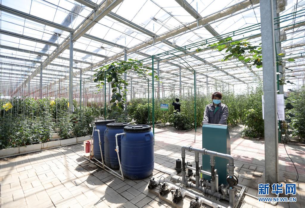 河北省饶阳县一家现代农业示范园区工人在智慧温室操作水肥一体化设施(2020年4月8日摄)。近年来,河北省饶阳县在推进农业供给侧结构性改革中,积极优化农业产业结构,依托现代农业示范园区建设,将自动滴灌、远程数据采集、智能电力温控等先进“工业化”技术应用于农业生产。