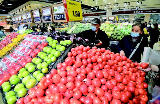 4月9日,顾客在河北省邯郸市一家超市选购蔬菜。 新华社发(郝群英摄)