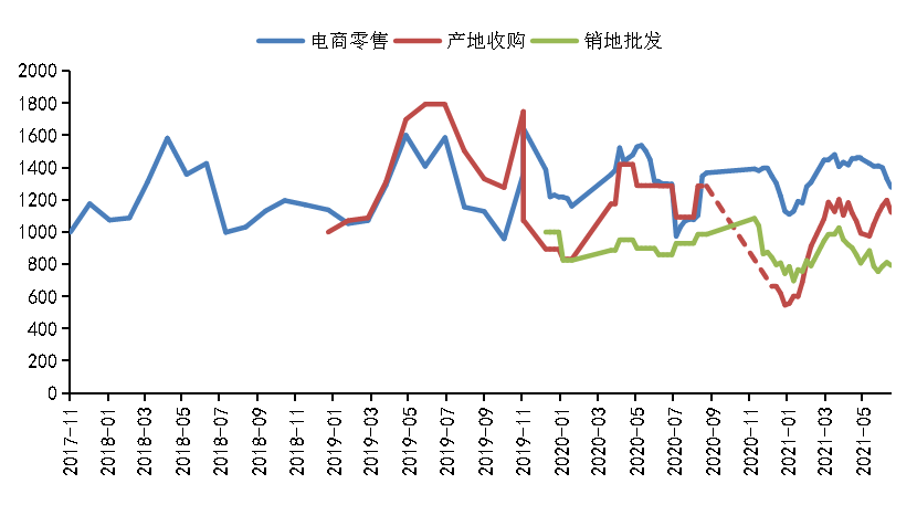 电商零售方面,截至6月14日,新华·宜昌秭归脐橙电商价格指数报1278.04点,环比下跌4.00%,同比下跌1.72%,较基期(2017年11月)上涨27.80%。本期各监测点秭归脐橙电商销量环比下跌0.96%,电商销售均价环比下跌4.00%。