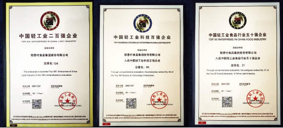 7月20日,由中国轻工业联合会主办的“奋进十四五·领航新消费”轻工业百强高峰论坛在京召开。稻香村集团(苏州)荣获2020年度“中国轻工业二百强企业”、“中国轻工业科技百强企业”及“中国轻工业食品行业五十强企业”三项大奖,分别位列第104位、第99位、第31位,企业综合实力、科技创新能力获行业认可。