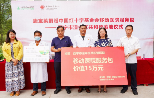 7月23日, 康宝莱宣布,向青海省西宁市湟中区共和镇卫生院捐赠价值逾15万元的“移动医院服务包”。该项目作为康宝莱“营养零饥饿——乡村医生”项目的一部分,将依托全面、先进的医疗检测设备,切实帮助当地村民解决基础诊疗需求,助力乡村公共卫生事业振兴。西宁市市场监督管理局领导、共和镇人大主席郝广学、共和镇副镇长张力丹、共和镇卫生院副院长张玉德、康宝莱中国区对外事务副总裁董瑞萍等共同出席了捐赠仪式。