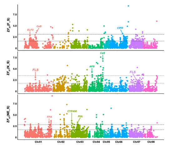 图为不同“中国李”李群体选择压分析 (中国农业科学院郑州果树研究所供图)