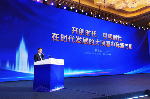 洋河股份党委书记、董事长,双沟酒业董事长张联东发表题为《开创时代引领时代在时代发展的大浪潮中奔涌向前》的主题演讲,以新的发展视角,剖析中国经济的内生动力,把脉中国白酒高质量发展之路。