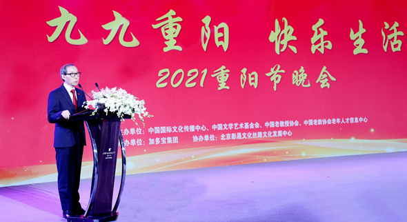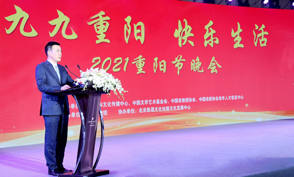 中国国际文化传播中心执行主席龙宇翔向与会嘉宾致以节日的问候和美好的祝愿。他说,老年人是当今美好生活的开拓者和奠基人。老前辈们丰富的阅历经验和奉献精神,为国为民的高尚情怀,老骥伏枥、老当益壮的进取意识,永远是我们学习的榜样,永远是激励我们开拓进取、砥砺前行的强大精神力量。中国国际文化传播中心连续三年举办重阳晚会,把弘扬尊老、爱老、敬老纳入国际文化传播交流体系,让具有民族特色、时代特征的敬老孝亲文化深植人心,走向世界,使中华民族传统美德遍地开花。