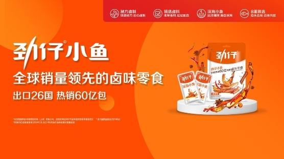 根据数据统计,自2016年以来,劲仔小鱼累计销售超60亿包,出口英国、法国、日本、韩国等全球26个国家,基于此,劲仔小鱼荣获欧睿国际发布的“全球销量领先的卤味零食”市场地位证明。