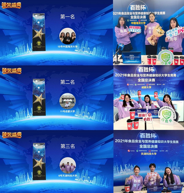 12月4日,2021年“百胜杯”食品安全与营养健康知识大学生竞赛全国总决赛于北京举行。经过五轮激烈角逐,中国海洋大学代表队脱颖而出,获得本届“百胜杯”全国总冠军。成都大学和天津科技大学代表队分别获第二、三名。