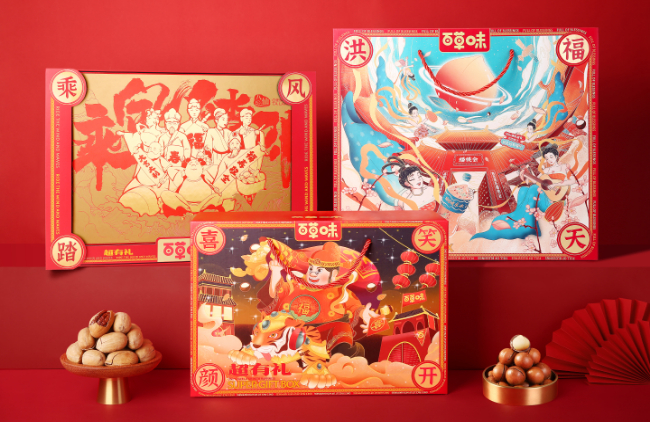 (百草味线下门店定制礼盒“贺新年”)