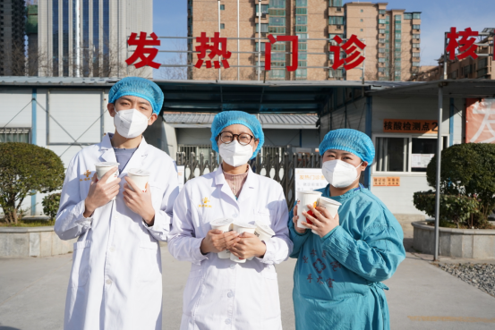 “众志成城 抗击疫情”“您辛苦了”……自2021年12月29日起,西安市不少医务人员、民警、快递小哥等都收到了一杯杯身上贴有爱心贴的奶茶。