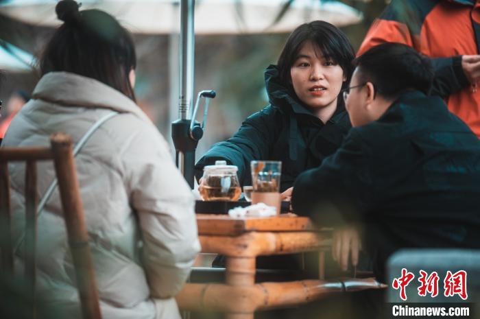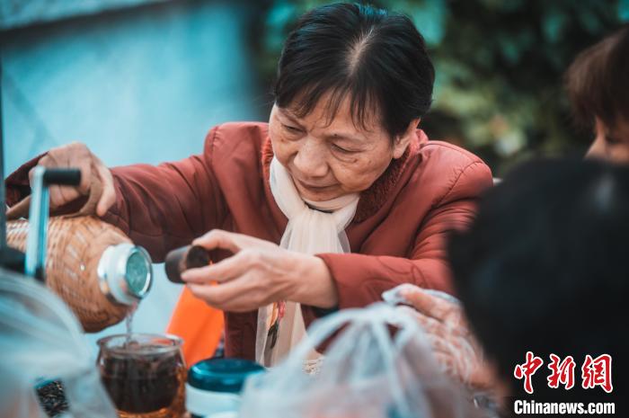 市民自助泡茶,享受休闲时光。 李南轩 摄
