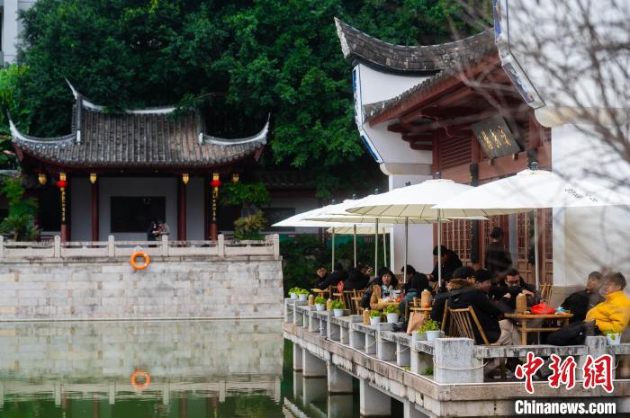 位于福州黎明湖公园内的大众茶馆成为市民享受春节假期的好去处。 李南轩 摄