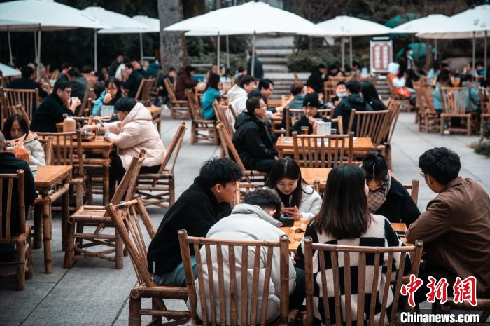 2月6日,虎年正月初六,位于福州黎明湖公园内的大众茶馆成为市民享受春节假期的好去处。空地上竹制桌椅一字排开,市井味十足。民众三五成群围坐一起,泡上一壶茶,欣赏早春美景。