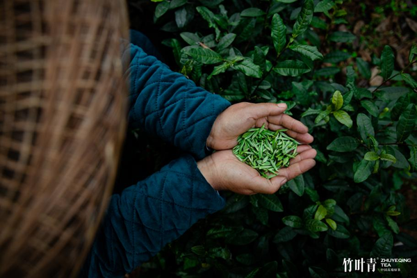 春茶仅一季,竹叶青峨眉高山绿茶品质恒定、四季如新,离不开对高端品质的追求和制茶技术的攻关。竹叶青其产地峨眉山,不仅是一座高海拔名山,更身处北纬30度黄金产茶带、华西雨屏,终年氤氲在高山云雾中,茶园环境极为优越。而竹叶青的采摘时间,更是特别——比明前更“鲜”,最早2月就能开始采摘,是每年最早上市的春茶。至于竹叶青的采摘,更是坚持“高山、明前、茶芽”的三大标准,只取精选茶芽,优中选优,为了最大程度的保留住茶芽“鲜”和“嫩”,只采鳞片舒展后的饱满茶芽,论道级竹叶青茶每1000颗茶芽才能产出1g,真正的“千里挑一”。