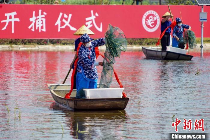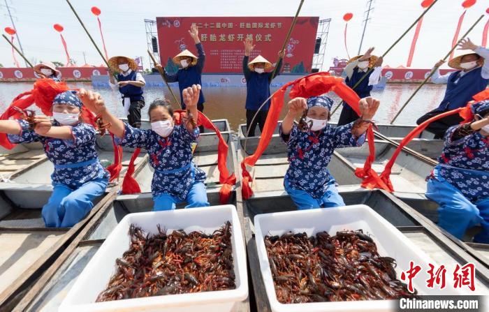 5月18日,江苏省淮安市盱眙县国家现代农业产业园内,当地龙虾养殖户捕捞小龙虾。当日,有着“龙虾之都”美誉的盱眙县举行第二十二届中国·盱眙国际龙虾节龙虾开捕仪式。盱眙县地处淮河下游、洪泽湖南岸,小龙虾是当地经济产业、商贸旅游的一张闪亮名片。