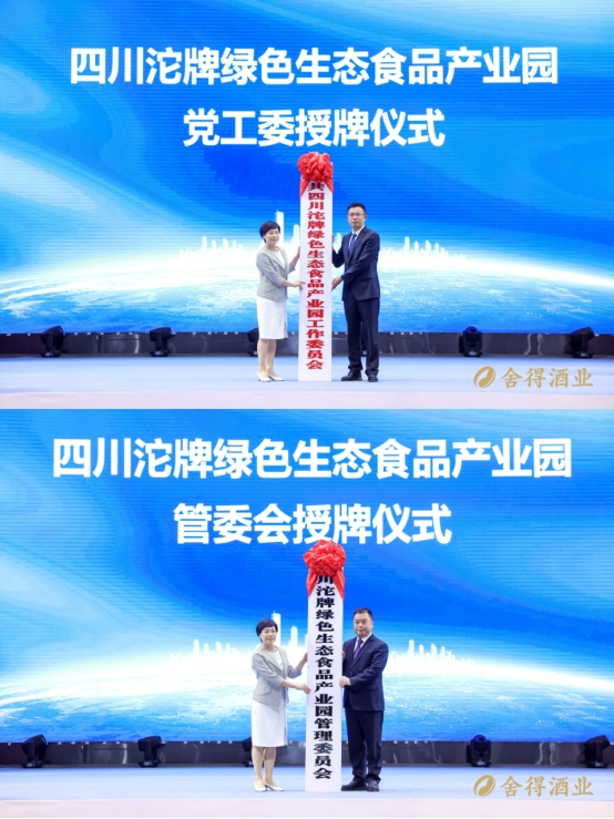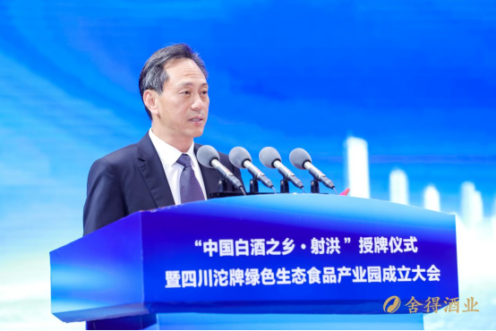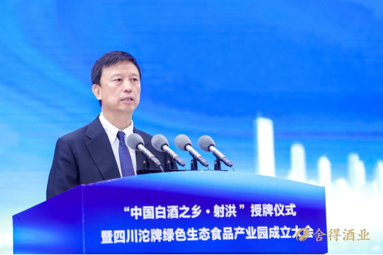 现场,遂宁市委书记李江代表遂宁市委、市人大常委会、市政府、市政协和遂宁人民,向长期以来关心支持遂宁发展的嘉宾、朋友表示感谢,向四川沱牌绿色生态食品产业园的正式成立表示祝贺。他说,遂宁在“破”与“立”中锚定方向,坚持以精致农林为依托、以沱牌舍得为核心、以乡村振兴为支撑,高标准规划建设四川沱牌绿色生态食品产业园,着力打造千亿级特色优势产业集群。在“攻”与“守”中锁定目标,按照“进入大市场、融入‘双循环’”和“绿色低碳高质量、集聚集群集约化”的发展目标,努力抢占先机、赢得主动,在向市场的不断“进攻突围”中推动优势产业、优质项目、优越保障向园区集聚,打造更加响亮、更具特色的园区品牌。在“舍”与“得”中笃定信念,以真情实意、真招实策、真金白银打造一流营商环境,为产业园各类市场主体健康发展保驾护航。希望中国酒业协会、四川中国白酒金三角酒业协会和有关部门一如既往地关心支持园区发展,助力打造更加闪亮的射洪“白酒之乡”品牌,绽放更加精彩的千亿园区蓝图。