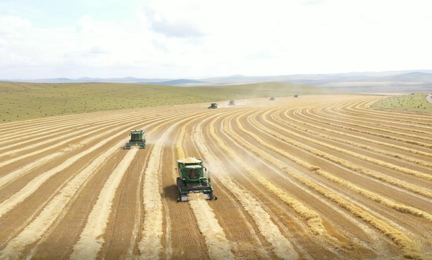 近日,中国最大的天然燕麦种植基地蒙北燕麦成熟了,陆续开始收割。麦浪翻滚,满目金黄,又到一年麦收时。