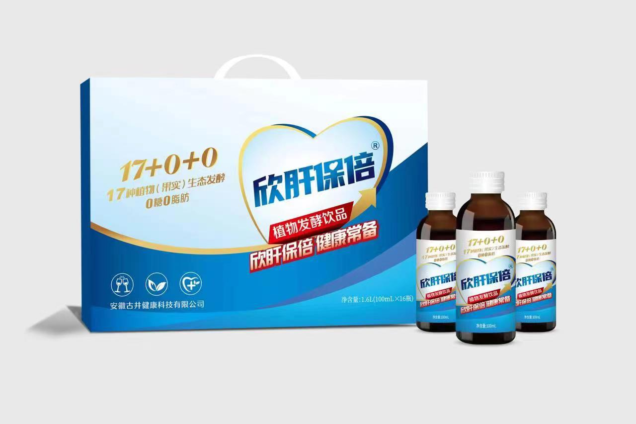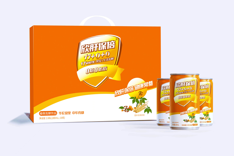 “欣肝保倍”图:“欣肝保倍”精选人参、枸杞、茯苓、枳椇子、黄精、重瓣红玫瑰、玉竹、沙棘、桑椹、柚子、山楂、罗汉果、金银花、菊花、荷叶、蒲公英等十七种中药材和植物果实,采用世界优质酵素菌种培养技术进行发酵,酿造出优质的滋补养生佳品,对保肝护胃,活化肠道益生菌有很好的功效。