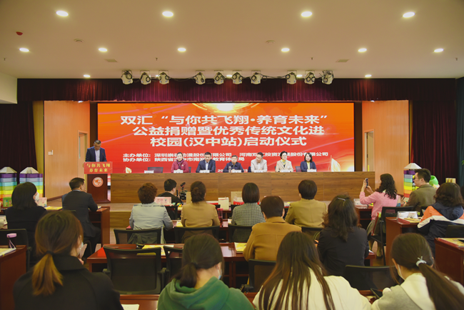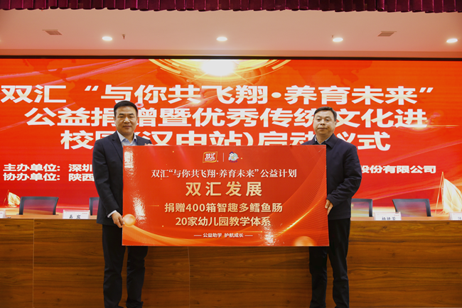 3月25日,双汇“与你共飞翔”公益计划第二站走进陕西汉中,汉中市南郑区教体局局长彭涛、副局长楚建正,儿童教育家赵先德,双汇发展副总裁周霄及当地幼儿园师生代表等100余人共同参与了捐赠仪式。