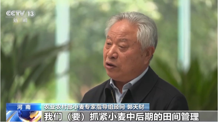 农业农村部小麦专家指导组顾问 郭天财:我们要抓紧小麦中后期的田间管理,一个措施一个措施地把它落实落地,一个环节一个环节,我们把它抓紧抓好,来巩固和发展当前苗情持续向好的态势,今年小麦丰收还是很有希望的。